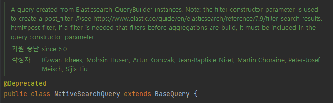 하지만 5.0버전 이상부터는 NativeSearchQuery가 Deprecated되었다,
