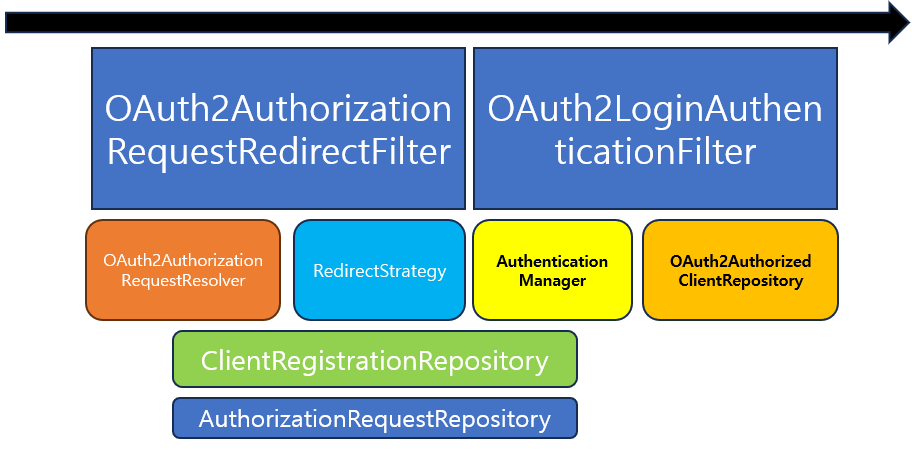 code와state를 사용하며AuthroizationRequestRepository에서 임시 저장한 정보를 받아 사용한다. 인증에 성공하면AuthenticationSuccessHandler를 통해 마무리한다. - AuthenticationManager : 스프링 시큐리티의 인증 관리자로서