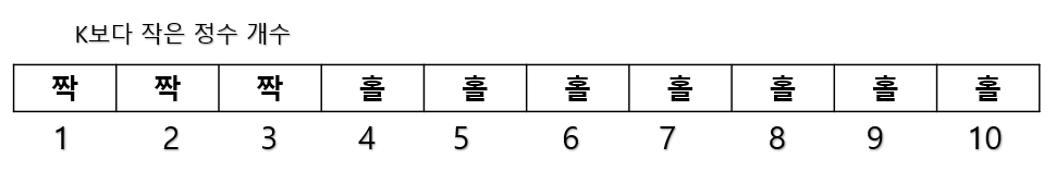 탐색 조건이다. 이때 k`는 0이 될 수 있으므로 +1 을 해준다. K가 C보다 커도 최대 C까지만 있기 때문에 둘 중 작은 값이 곧 K가 된다. 따라서 모두 더한 후 짝수인지 홀수인지만 확인해 주면 된다.
